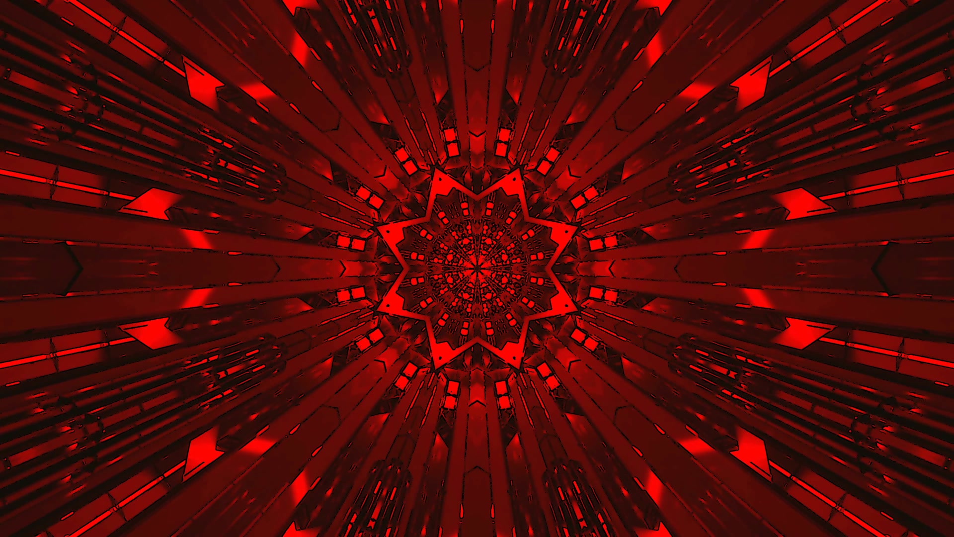 Deep Red Kaleidoscope Neon Tunnel 4k uhd 60fps Screensaver VJ Clip